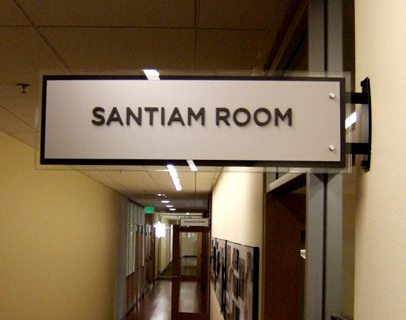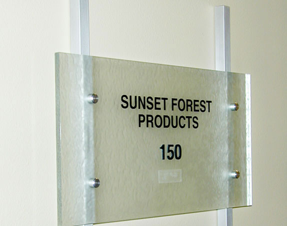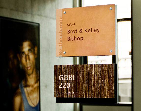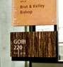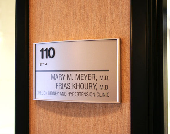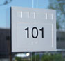 Interior architectural signage includes window and wall graphics, directories, restroom and room identification and signs required by codes including elevator, fire and mechanical room signs.