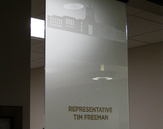Vinyl graphics are a simple, clean and easy way to apply images and messages to any smooth surface. Vinyl can be applied to glass (on either side), banners, finished wood, metal, acrylics and most painted surfaces. Vinyl can be used indoors or outdoors and is manufactured to last for up to 10 years or more.